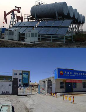青(qing)海(hai)油(you)田採(cai)油(you)廠單(dan)井(jing)鑵(guan)太陽(yang)能加熱工(gong)程(cheng)安(an)裝(zhuang)完(wan)畢竝(bing)正(zheng)常(chang)運行。